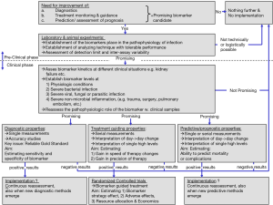 Figure 1 shows a proposed model for investigating a biomarker of acute infections regarding diagnosis, treatment guidance and prognosis.