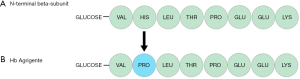 Hb Agrigente is caused by a point mutation at codon 2 of the haemoglobin beta chain molecule resulting in the translation of proline instead of histidine (Figure 7). To our knowledge, there has only been one case published in the literature of Hb Agrigente, which was identified in a 48-year-old diabetic patient of Sicilian origin (5). However, substitution of histidine to proline has also be reported in cases of Hb Marseilles (6), and Hb Long-Island Marseille (7,8) caused by CAT>CCT at codon 2.