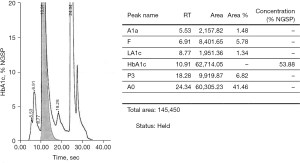 - Florkowski CM, Walmsley TA, Brennan SO, et al. Haemoglobin Marseille-Long Island and interpretation of HbA1c: which HbA1c result is the “right answer”?. Postgrad Med J 2003;79:174-5. [Crossref] [PubMed]